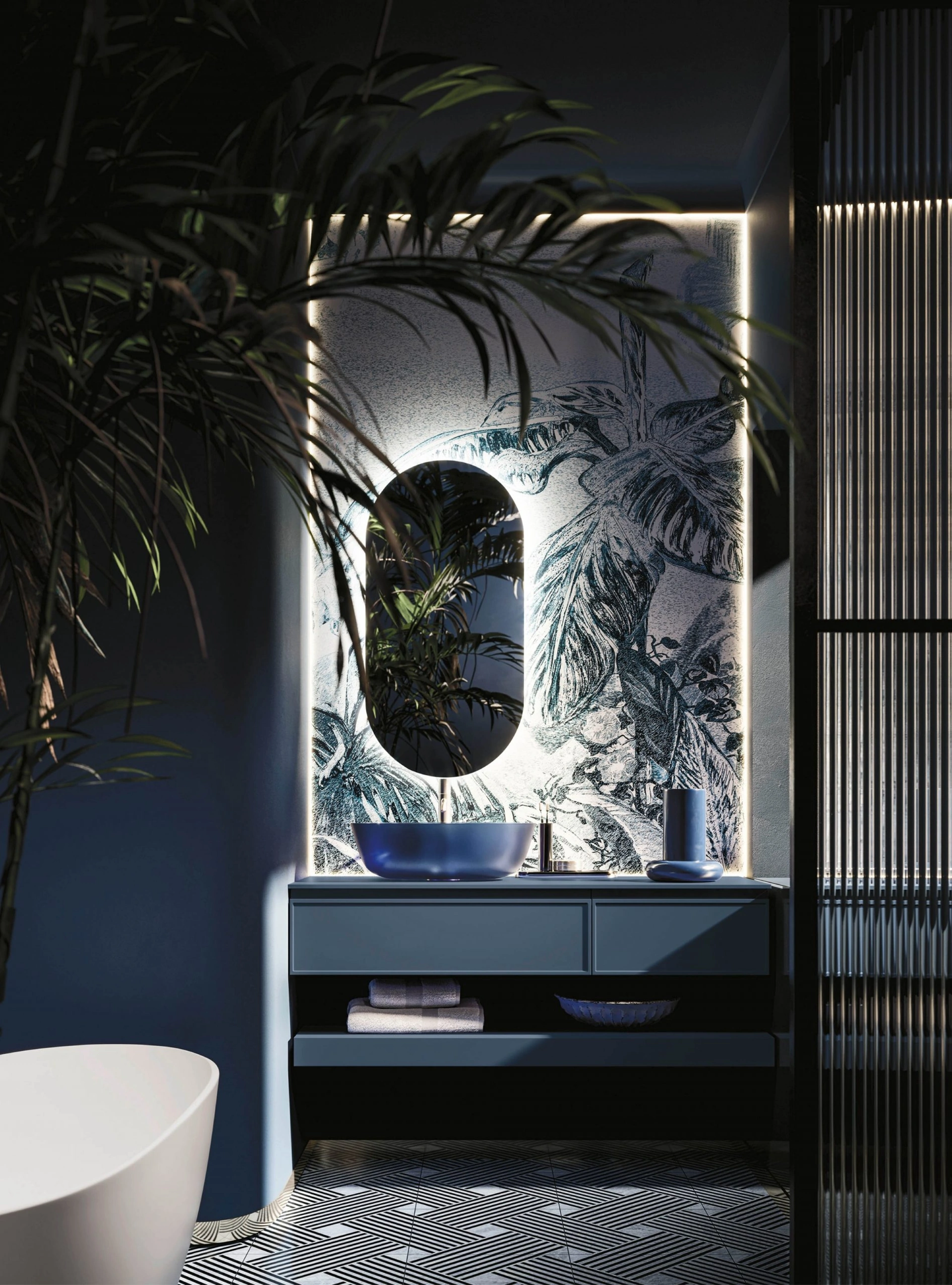 Mobile da Bagno sospeso Decor Blue Forest di Arbi: clicca e ottieni informazioni su mobili bagno sospesi in laccato opaco e elementi accessori della marca.