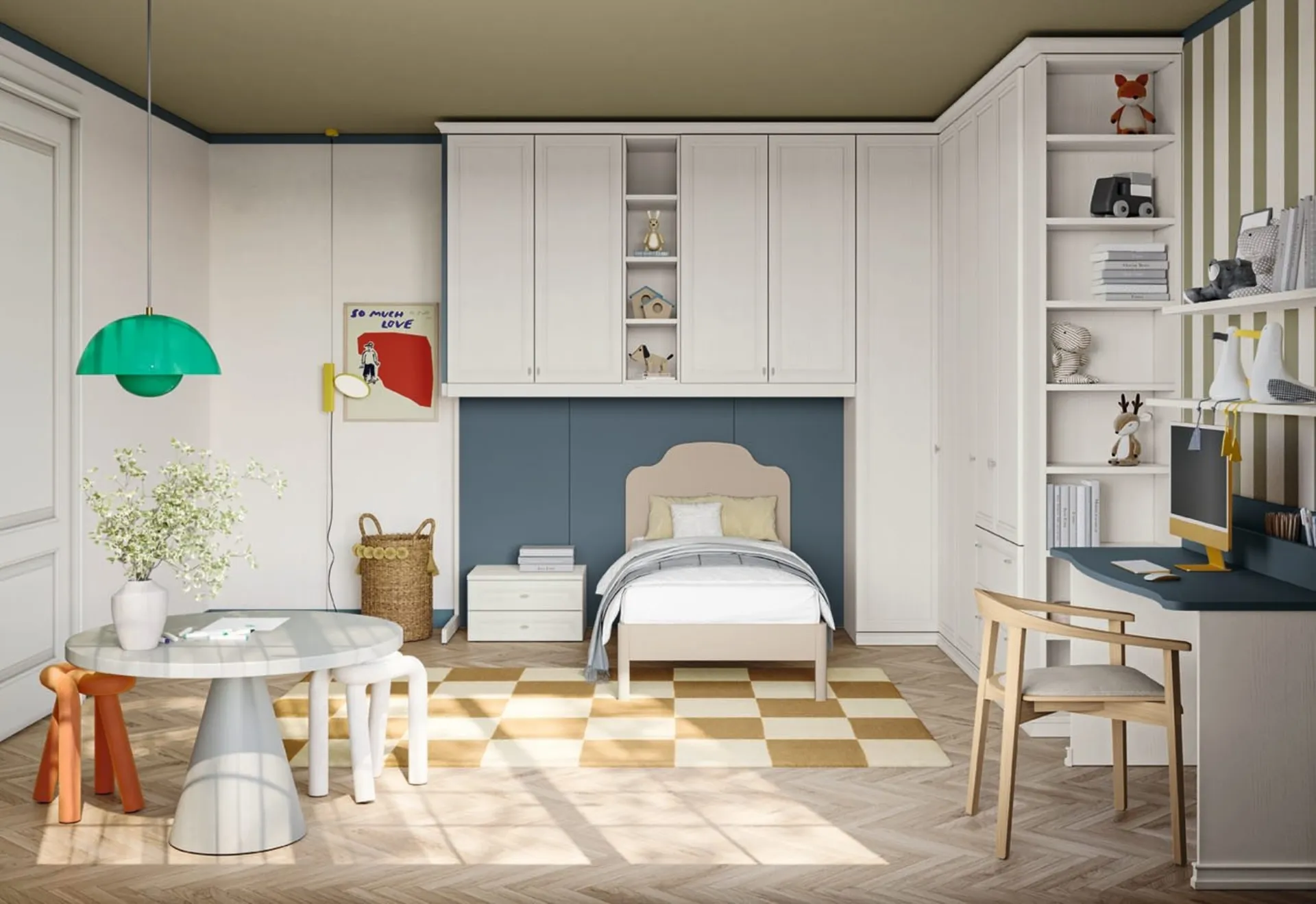 Con la Cameretta a ponte Arcadia AC027 di Colombini Casa in melaminico ti garantirai un perfetto mix di ergonomia e sicurezza, ideale per la stanza dei tuoi bambini. Presentiamo nel nostro showroom svariate Camerette a ponte classiche per ragazzi del brand, ideali per accompagnarli durante il loro sviluppo. Nel nostro showroom ti seguiamo dalla scelta dei mobili per la camera alla progettazione del luogo in cui i tuoi bambini cresceranno, giocando e sognando. I nostri bambini trascorrono gran parte del giorno nelle loro camere da letto: rendile adatte per fare i compiti, divertirsi e dormire tutti i giorni. Le Camerette dei nostri bambini sono lo spazio dove diventeranno grandi giocando e sognando, perciò è essenziale che lo spazio sia ben organizzato.