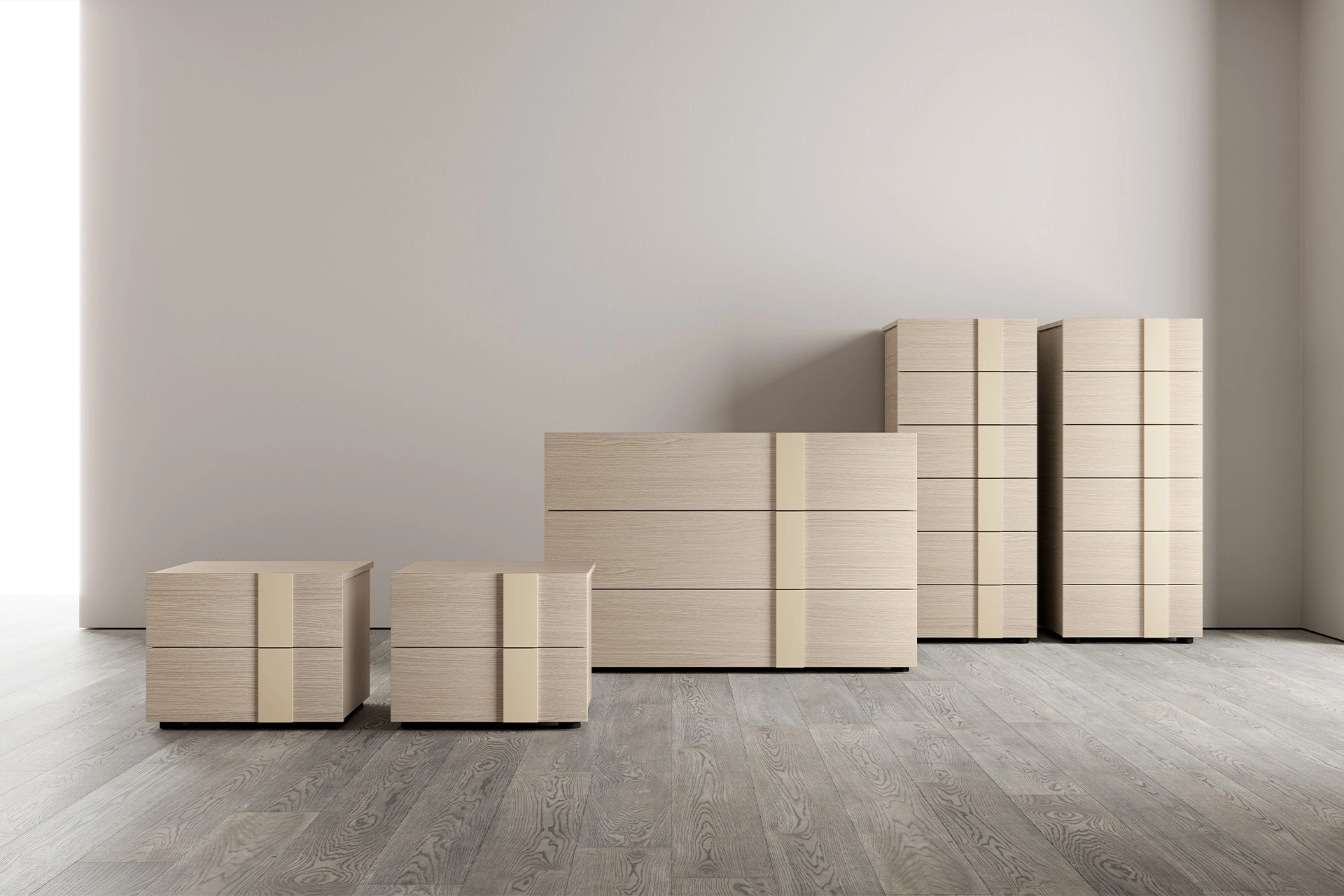 Vuoi ammobiliare la zona notte con Comodini e mobili con cassetti di SantaLucia? Eccoti il modello Alfy Gruppo Notte in melaminico per spazi moderni.