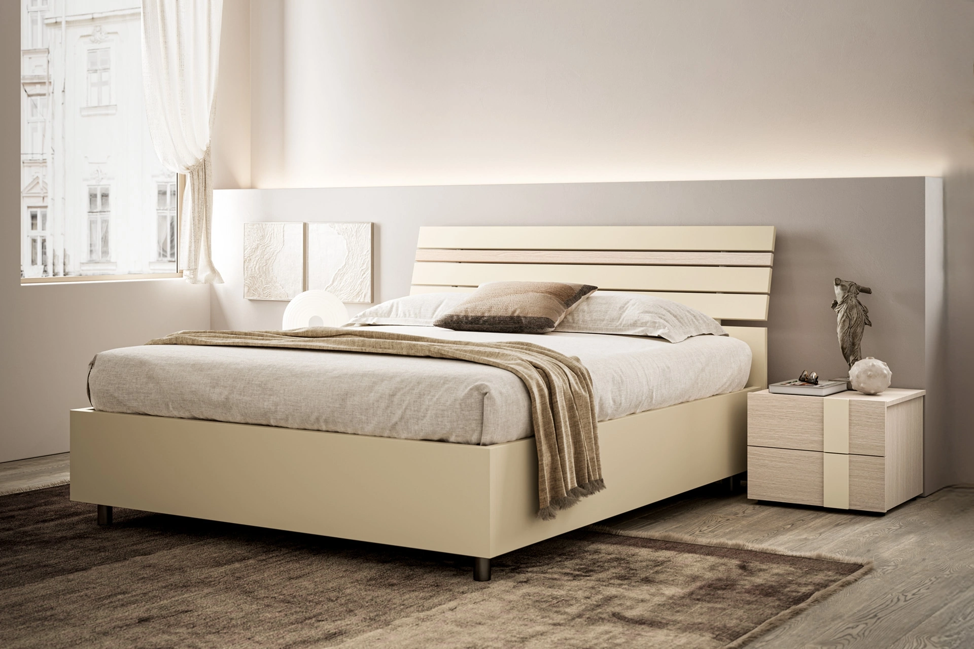 Vuoi rinnovare la camera da letto? Eccoti il letto in melaminico Baya di SantaLucia per spazi moderni.