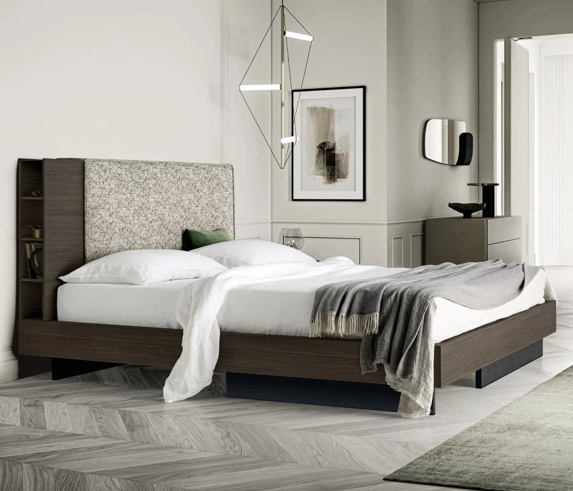 Per completare alla perfezione l'arredo della tua zona notte è indispensabile valutare gli accostamenti del letto con armadi e comò, elementi accessori e quant'altro: se vuoi arredi moderni, il modello nella fotografia fa per te.