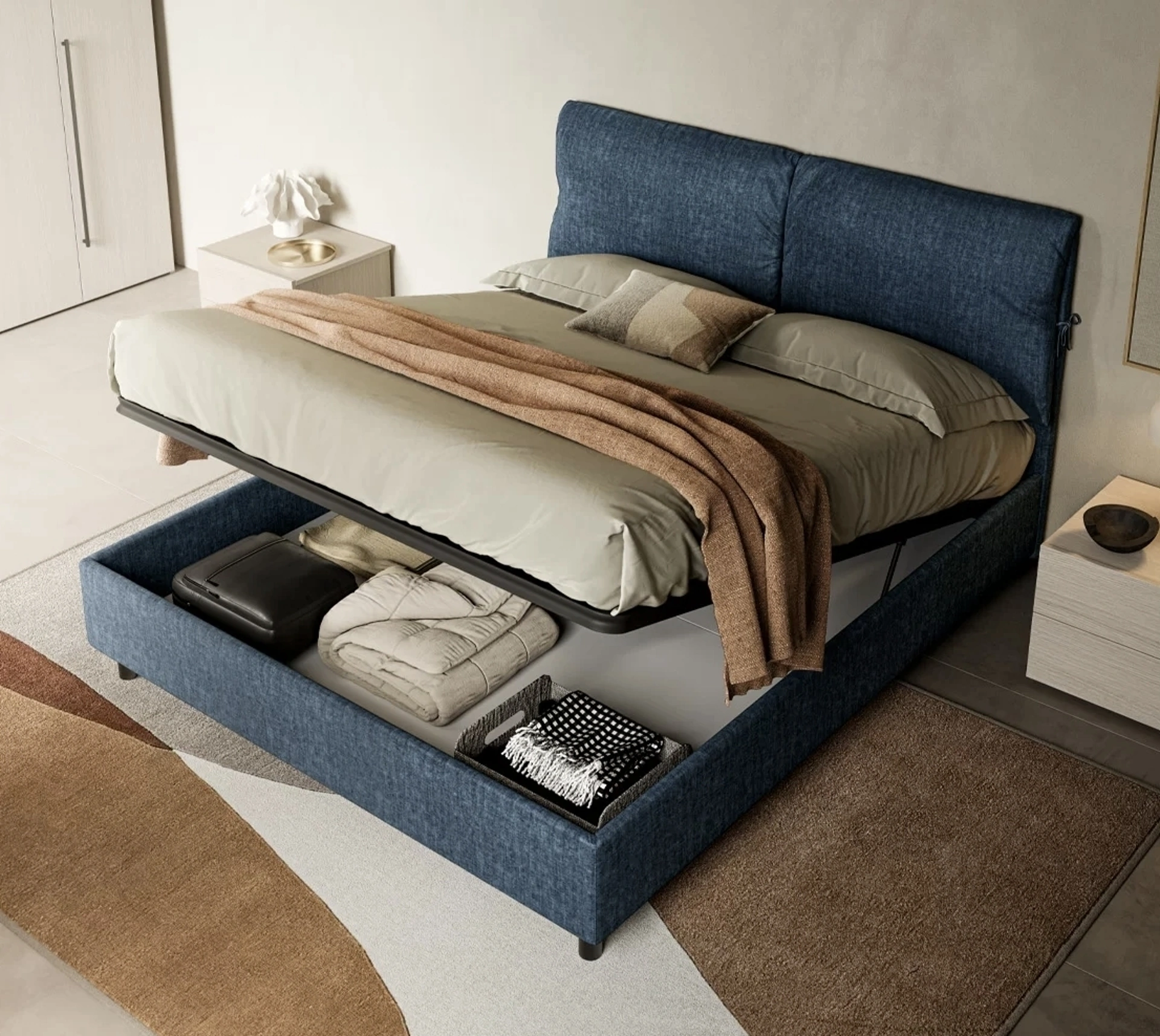 Questa è un prodotto di grande classe, che rappresenta tutta l'eccellenza garantita dalla pluriennale esperienza del marchio nel campo. Per completare alla perfezione l'arredo della tua camera da letto è indispensabile valutare gli abbinamenti del letto con armadi e comò, accessori e quant'altro: se desideri mobili moderni, il modello nella fotografia fa al caso tuo. Contattaci e scopri di più sulla nostra collezione di Letti matrimoniali con contenitore: valorizza la tua zona notte con le nostre composizioni.