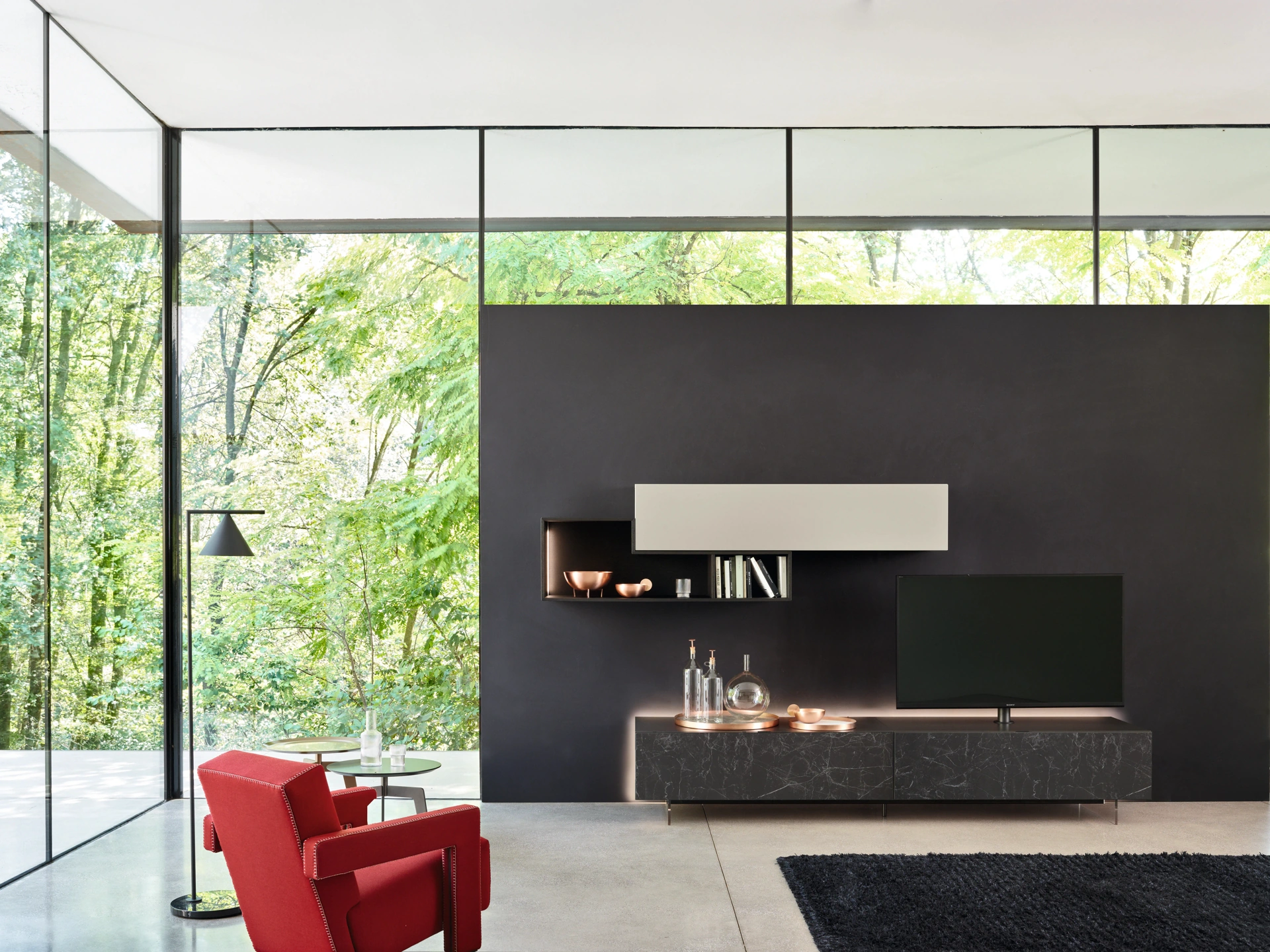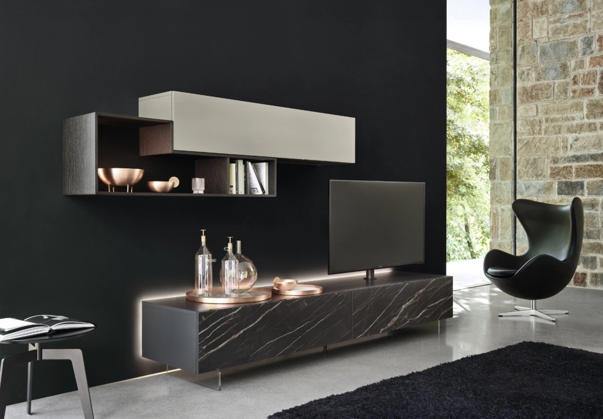 In una ricca collezione di Mobili Porta Tv design a firma Sangiacomo, prende grande importanza il modello in metallo presente in foto, mix di funzionalità e stile.