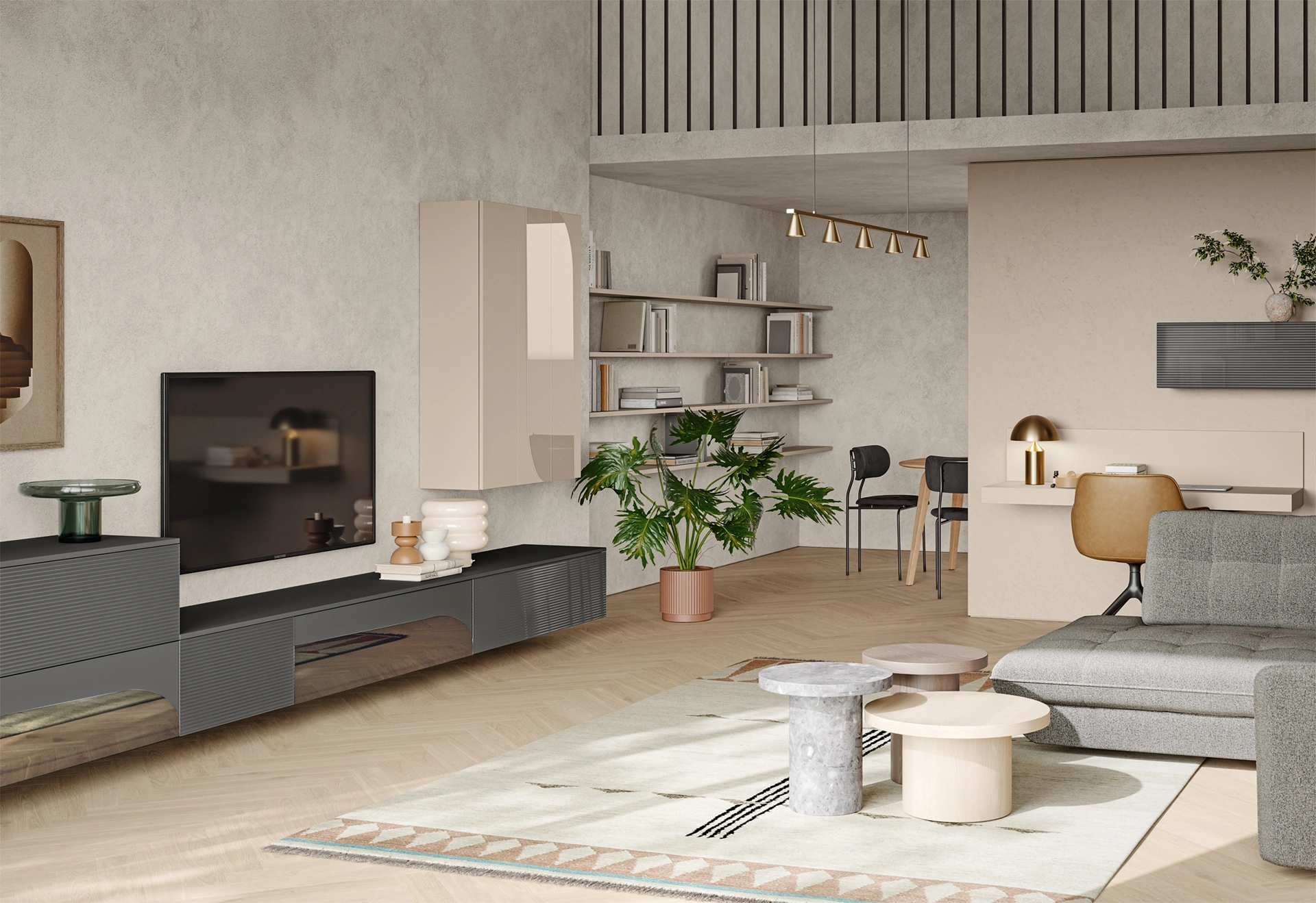 Clicca e scopri di più sulla parete attrezzata Eclettica EG001 del marchio Colombini Casa: è la soluzione dalle linee moderne perfetta per te.