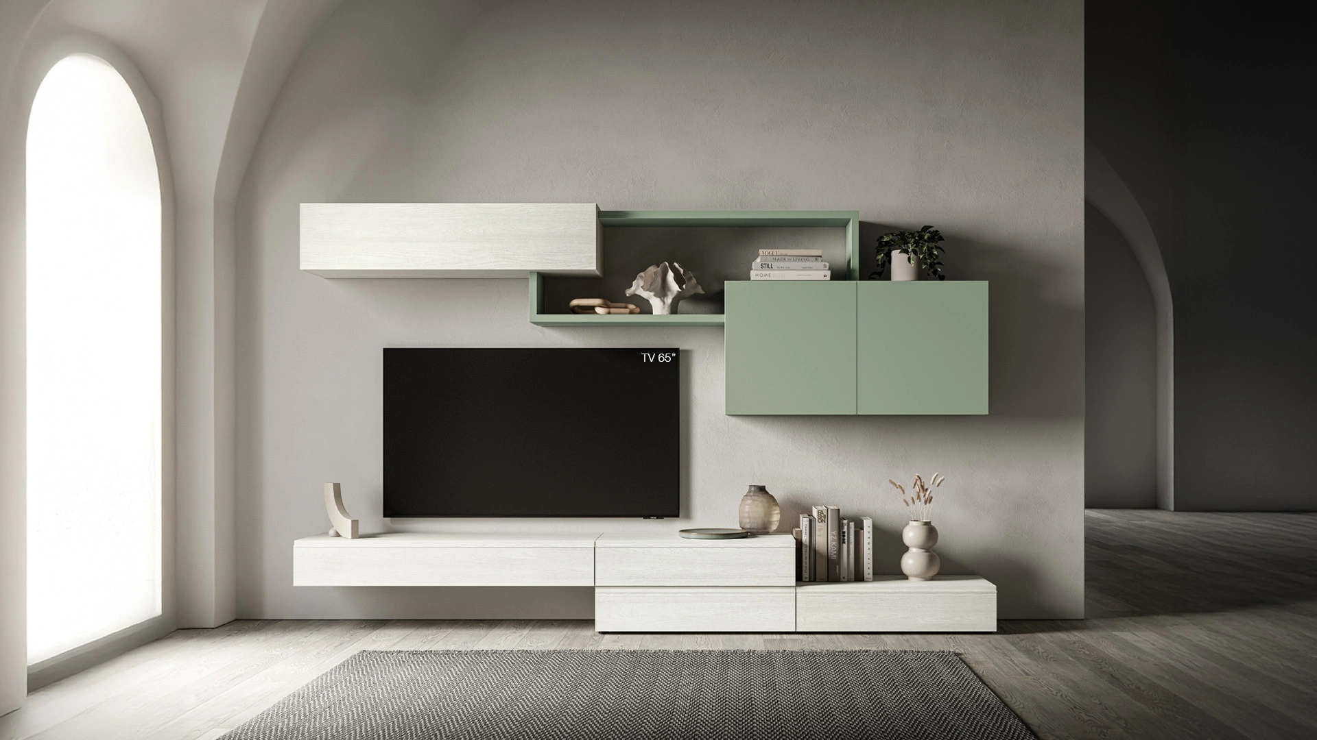 Vuoi arredare un soggiorno operativo e pratico? Ecco a te la parete attrezzata Pratico PTG404 SantaLucia dalle linee decise moderne.
